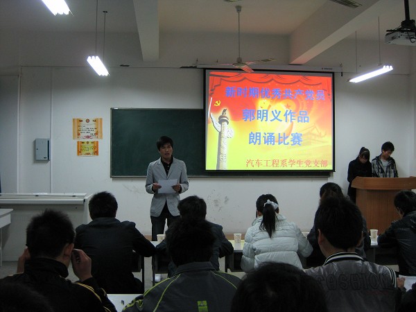 连日来,汽车工程系学生党支部掀起了学习郭明义精神的热潮,广大学生党员把向郭明义同志学习作为深入开展创先争优活动的重要内容,将全心全意为人民服务的精神转化为认真学习、甘于奉献、促进各项工作科学发展的强大动力,争当时代先锋。