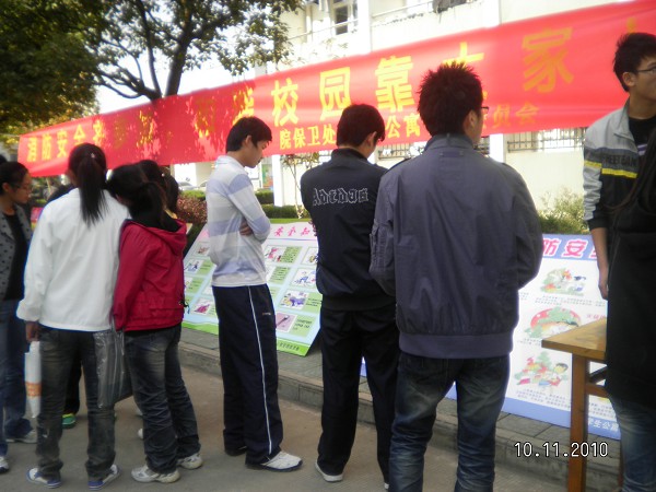 为提高我院师生的消防安全意识、增强安全防范能力,构建和谐平安校园,由院保卫处主办,院学生公寓管理委员会承办的“119消防日宣传活动”于2010年11月9日至11月11日在学生生活区拉开帷幕。