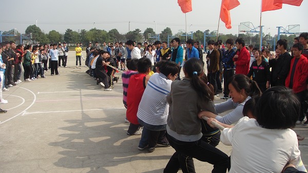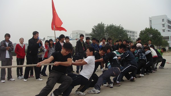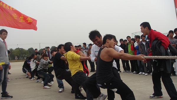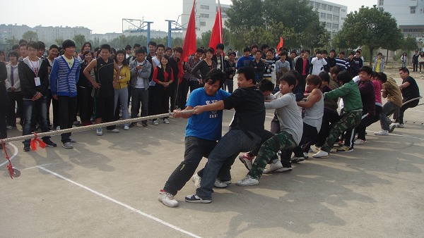 2010年11月3日下午,由院团委·学生会举办的 “2010阳光体育,健康生活”校园拔河比赛决赛阶段在阵阵呐喊声中拉开帷幕。各系部参赛代表队队员云集比赛现场,挥舞旗帜,学院篮球场洋溢着无比热闹的气氛。